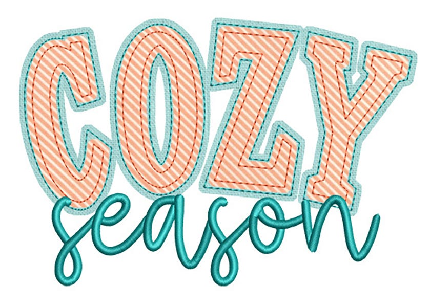 Time to snuggle up! Our Cozy Season Bean Stitch applique design is perfect for fall and winter projects. Four sizes included: 4x4, 5x7, 6x10 and 8x8.