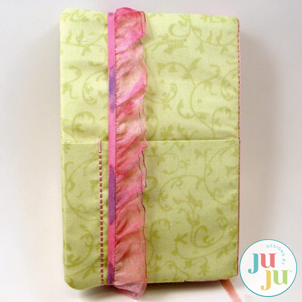 This in-the-hoop project is for a Bible with the following dimensions: 6.75 X 4.50 (inches). **Be sure to check your Bibles dimensions before purchasing this design. The Bible cover is done in 3 hoopings in 5x7 hoops: You will construct the front first, then the back with pocket, and then in the last hooping you will combine the two parts by stitching a cover spine. It is not hard to do. Just follow the instructions listed in the enclosed pdf document carefully. The Bible cover consists of a crazy patch style cover, with a butterfly and a small flower design, as well as two border designs. (Font used for name is not included) The cover has a back pocket for a small notepad and pen or highlighter, as well as an elastic strap that holds the Bible shut when not in use. Lots of photos included.
