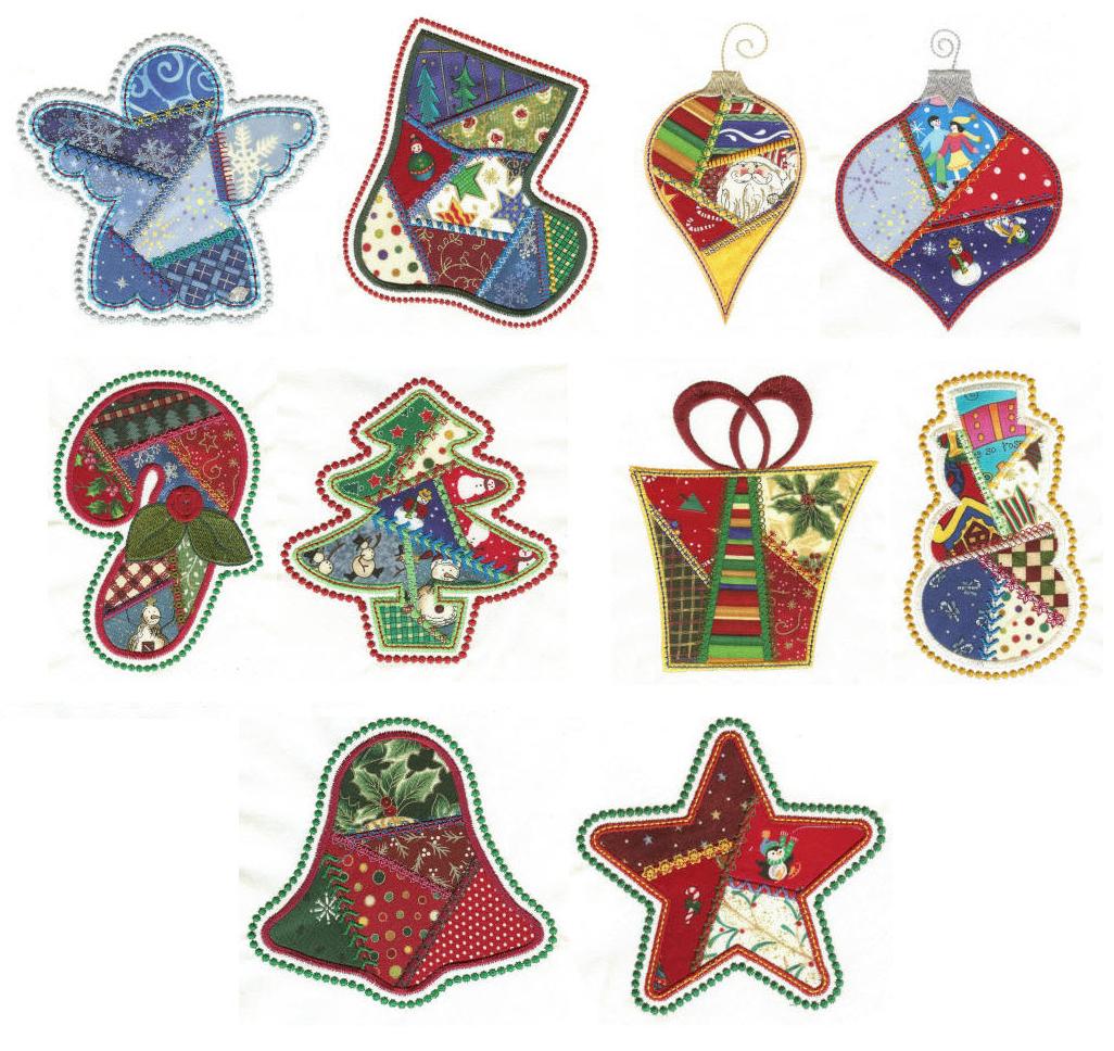 10 beautiful "crazy patchwork" style Christmas motifs in applique. Great for quilts, wallhangings, totes, towels, tree skirts, sweatshirts and more!