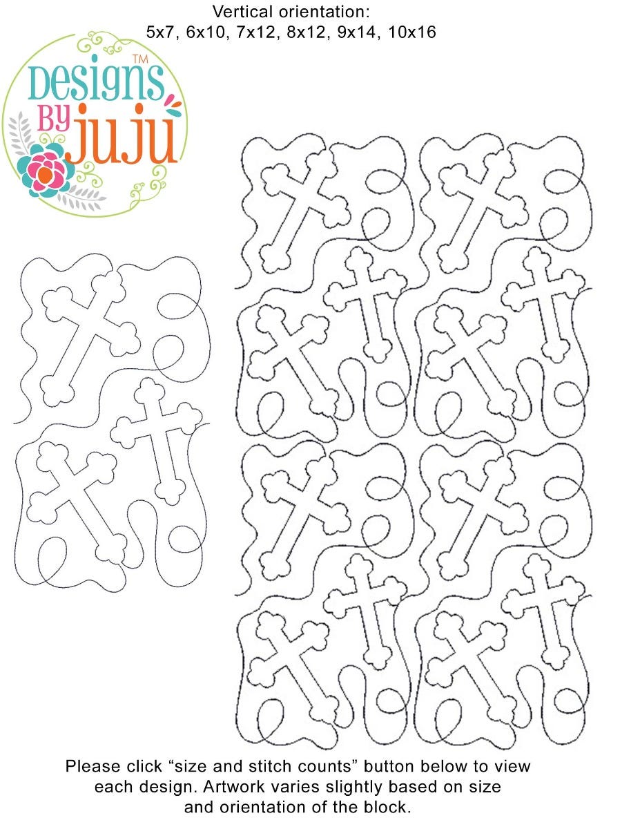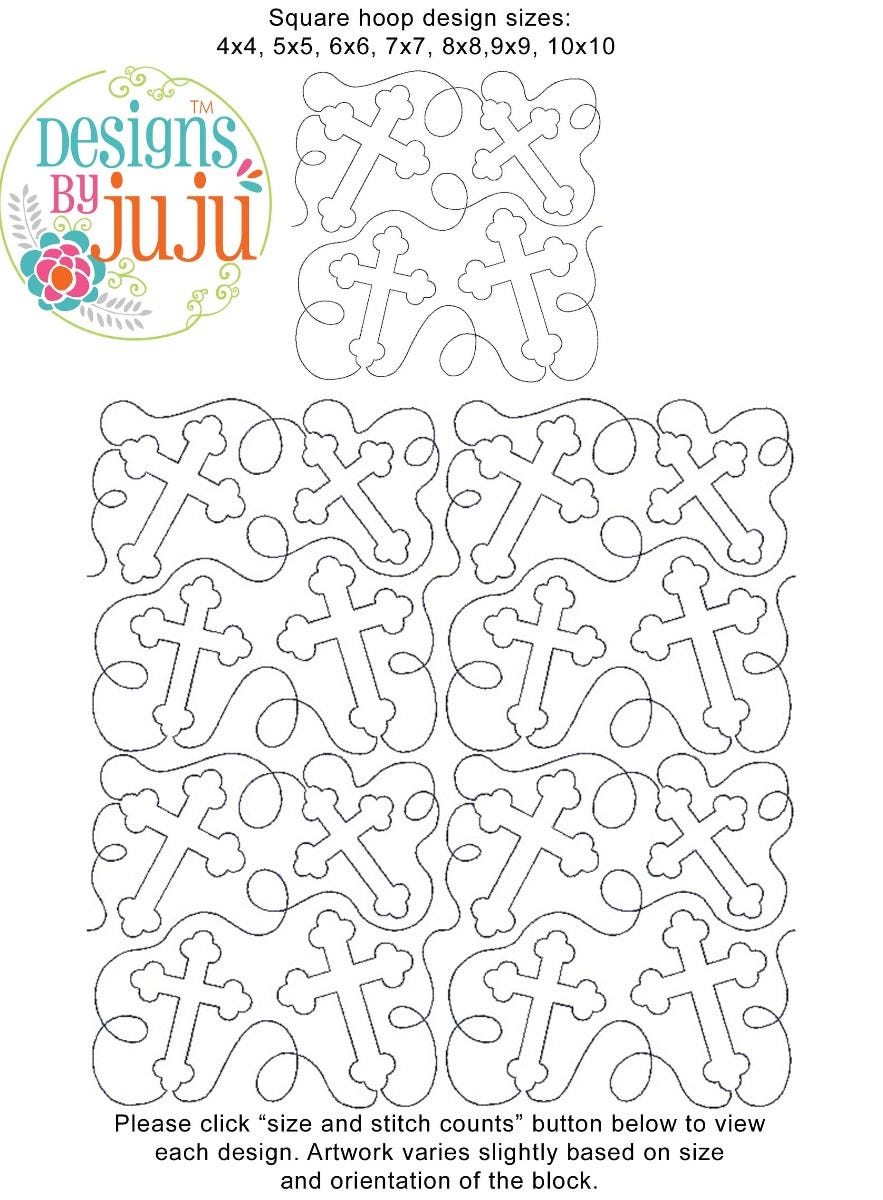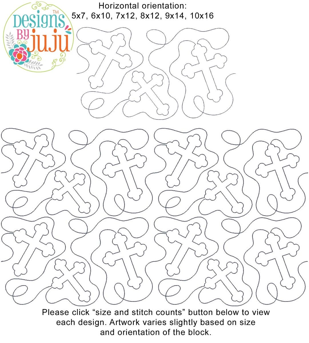 Please note: Both the scale of each pattern and arrangement of the motifs may vary based on the hoop size. Please click the "Size and Stitch Count" button to view the artwork for each size.