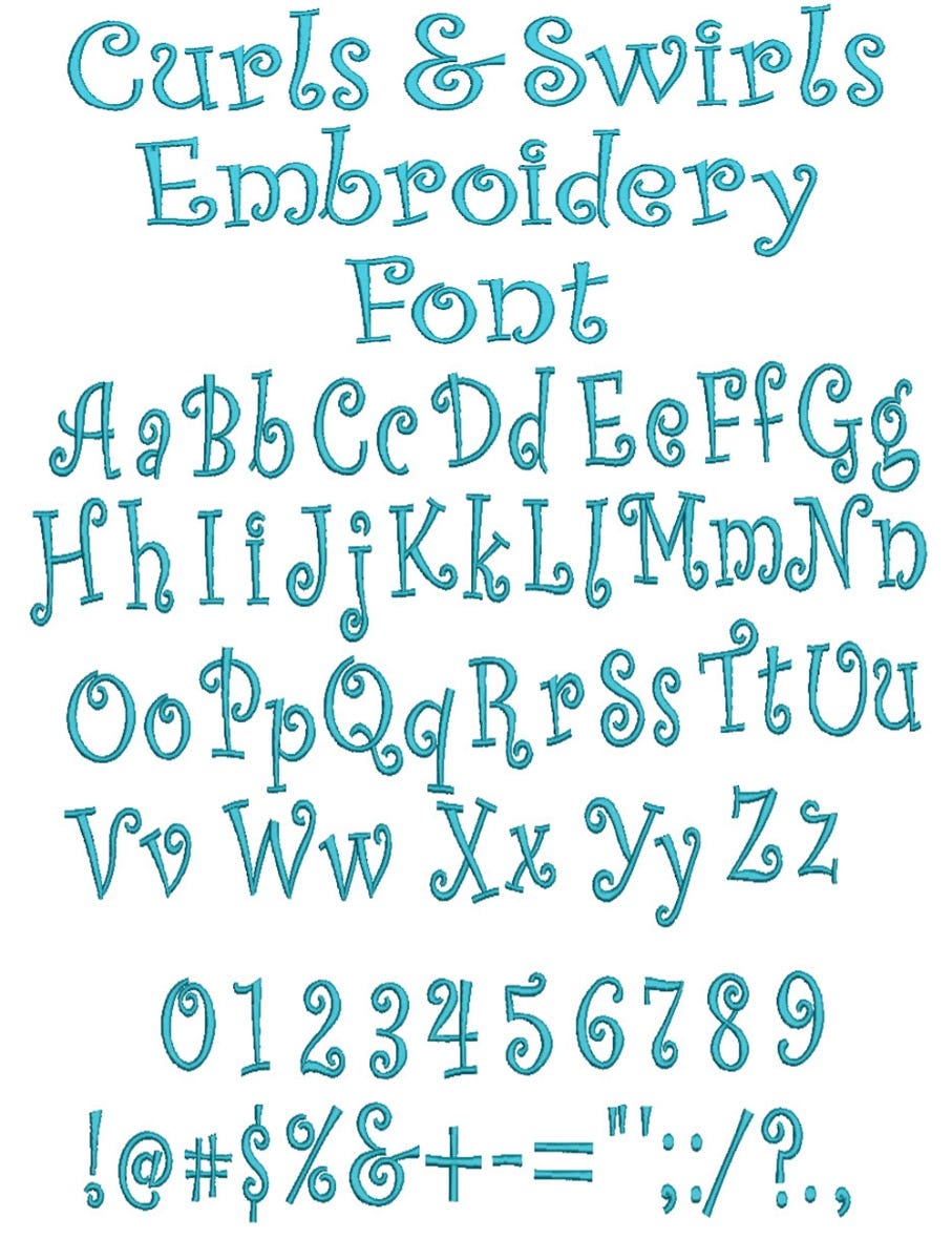 Introducing our Curls and Swirls Embroidery Font, a fancy script font with swirls that adds an elegant touch to any embroidery project. This curly font alphabet features swirls at the beginning and end of each letter, making it perfect for those seeking fonts with swirls on letters to enhance their designs.