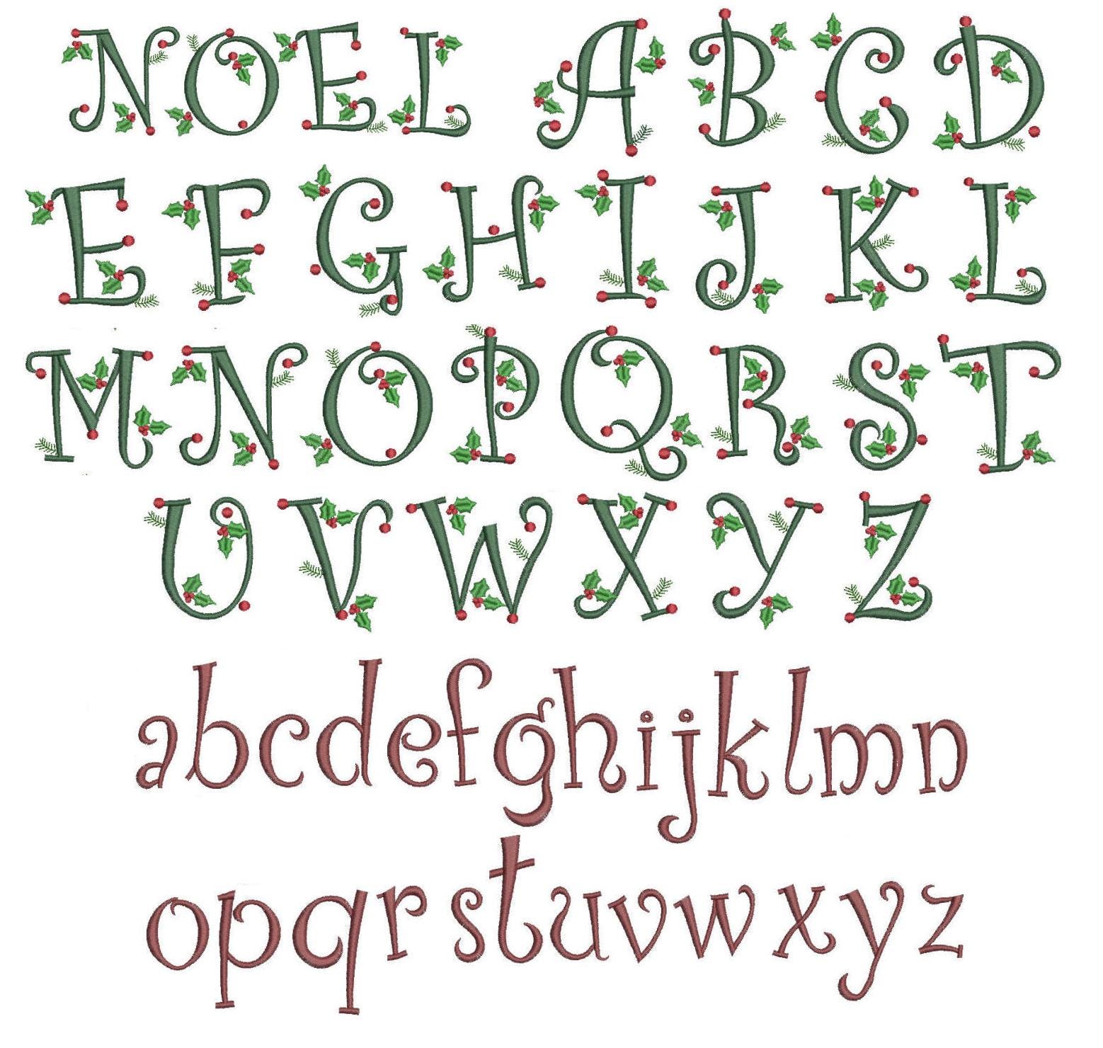 Here is a simple and dainty Christmas alphabet that can be used in a variety of ways. Use as monograms on clothing, towels, bags etc. Use an entire name in caps, or just the first letter in caps with the corresponding lower case letters.Ā Each capital letter is approx. 2" tall with a corresponding lowercase letter to match. These would be just darling on holiday dresses and jumpers!