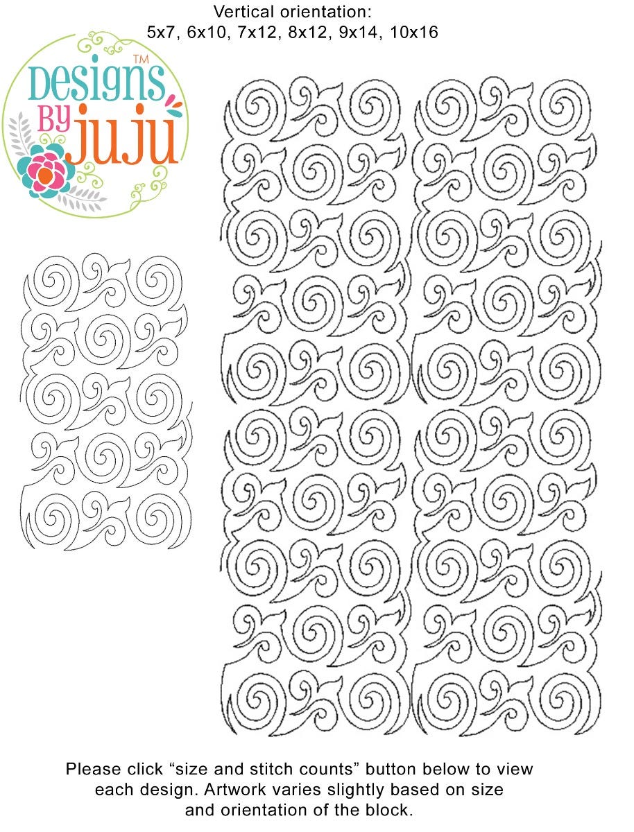 Each one of our End-to-End Quilting™ embroidery designs is an originally created design available in a large variety of block sizes. Every block is one continuous single-run line running edge to edge beginning on the left and exiting on the right. There is NO backtracking or double stitching. Each size block has been engineered and manually digitized by our team for EXACT edge-to-edge quilting precision so that when they are aligned properly in your hoop, you cannot tell where one block ends and the next one begins! ADDITIONALLY, the art has been created for each size so that when the rows are stacked on top of each other, it provides a practically seamless, professional, allover quilting effect that mimics (E2E) pantographs so you can do edge-to-edge quilting on your embroidery machine!