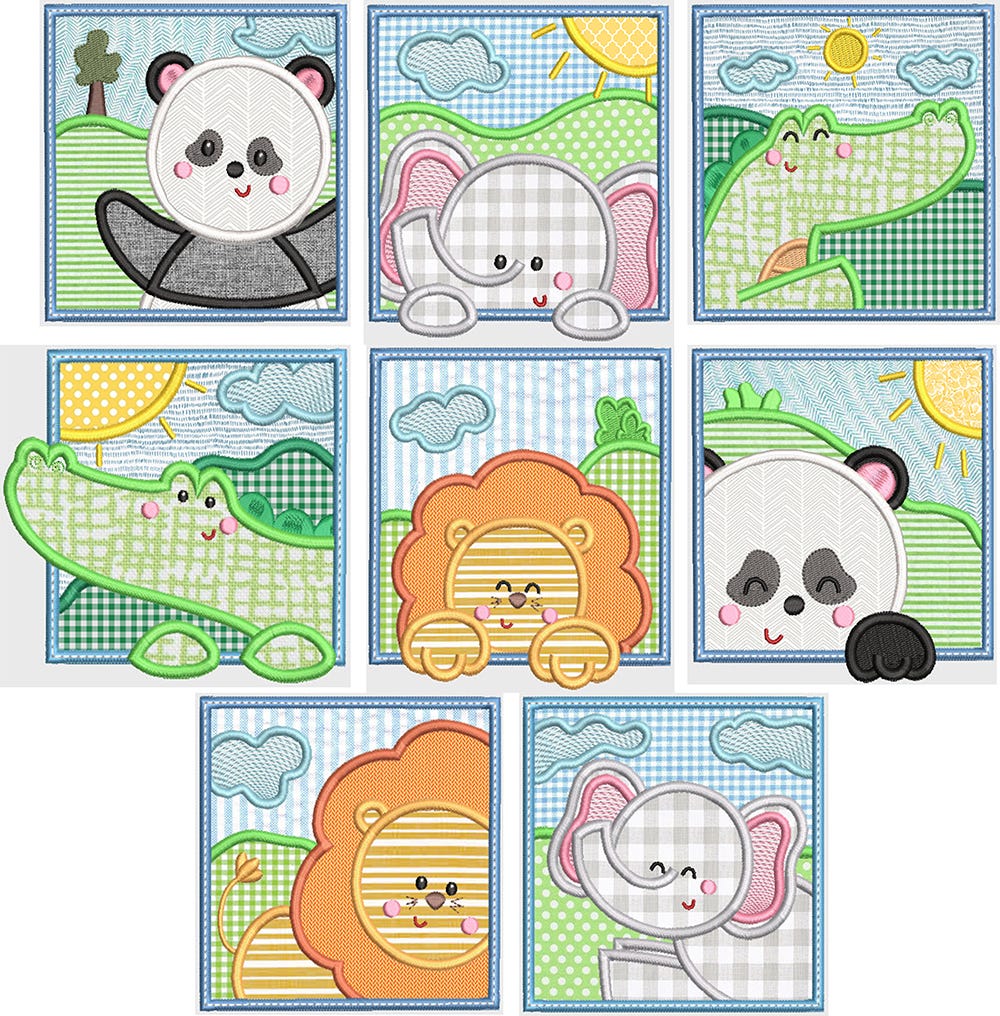 8 more adorable animal square designs in applique!