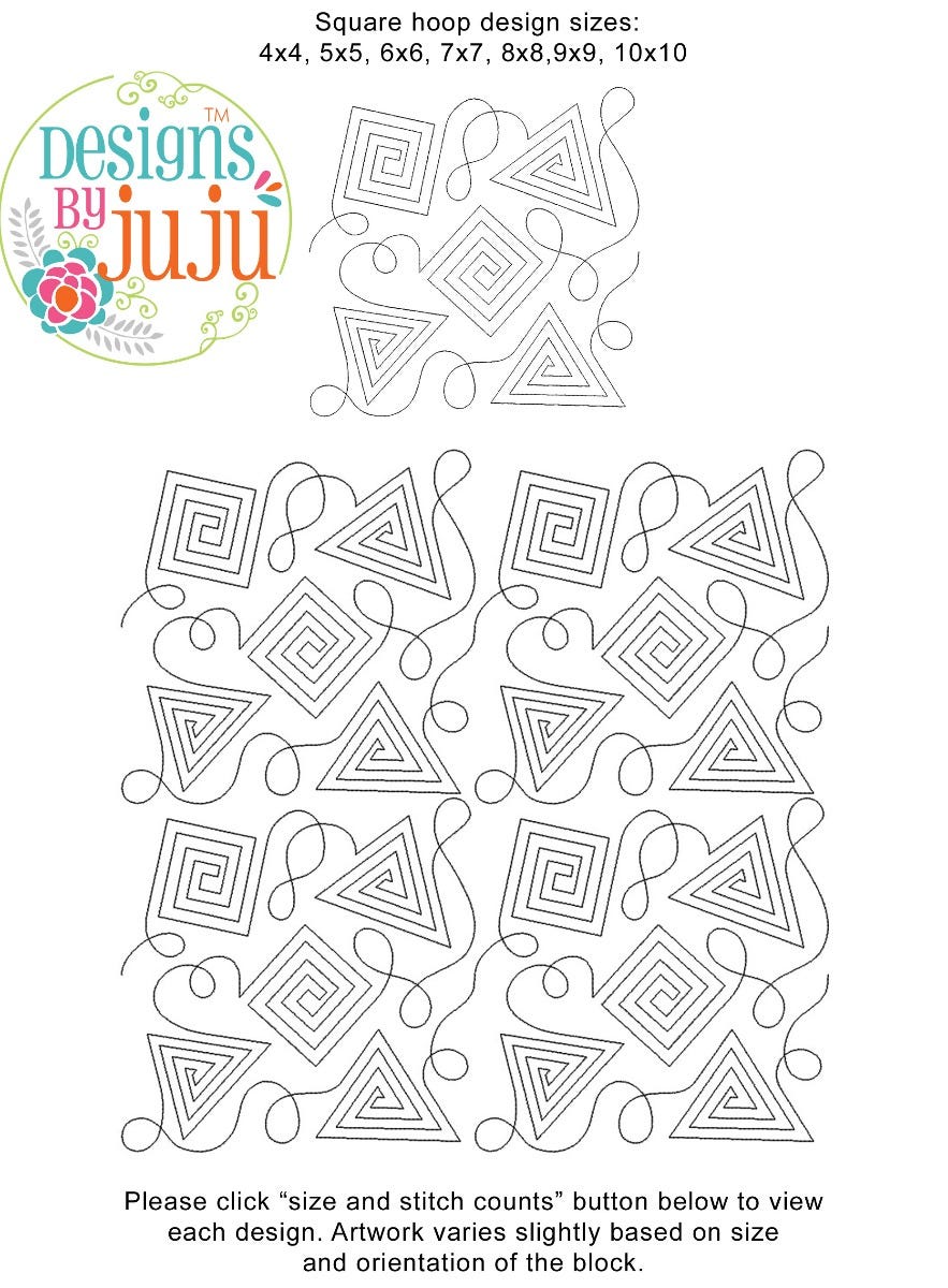 13 sizes included! 7 square sizes and 6 rectangle hoop sizes (includes files for both vertical and horizontal orientations). Reverse Point Order files are also included for use on large quilts.