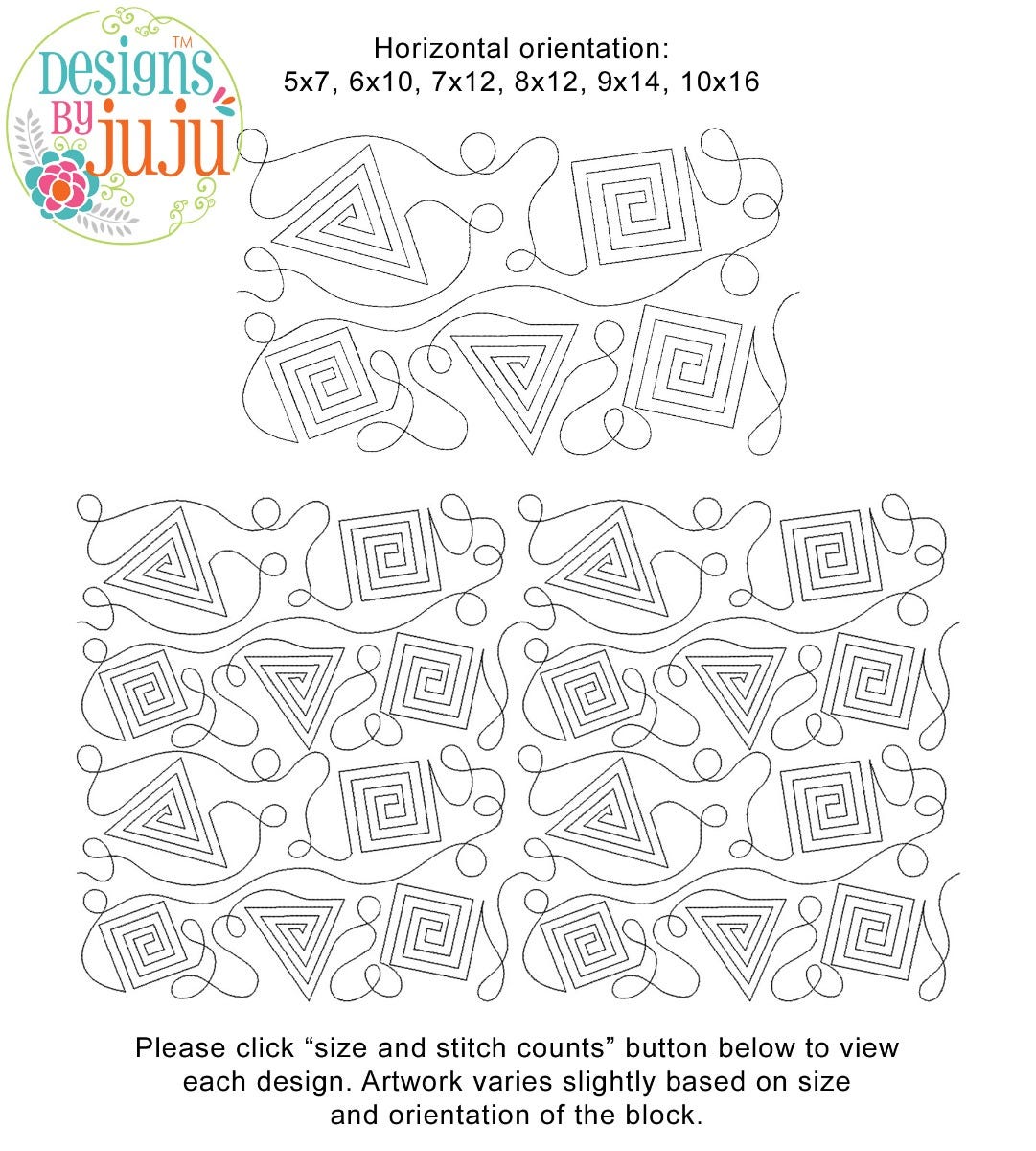 Includes continuous line single run End-to-End Quilting™ embroidery design as shown.
