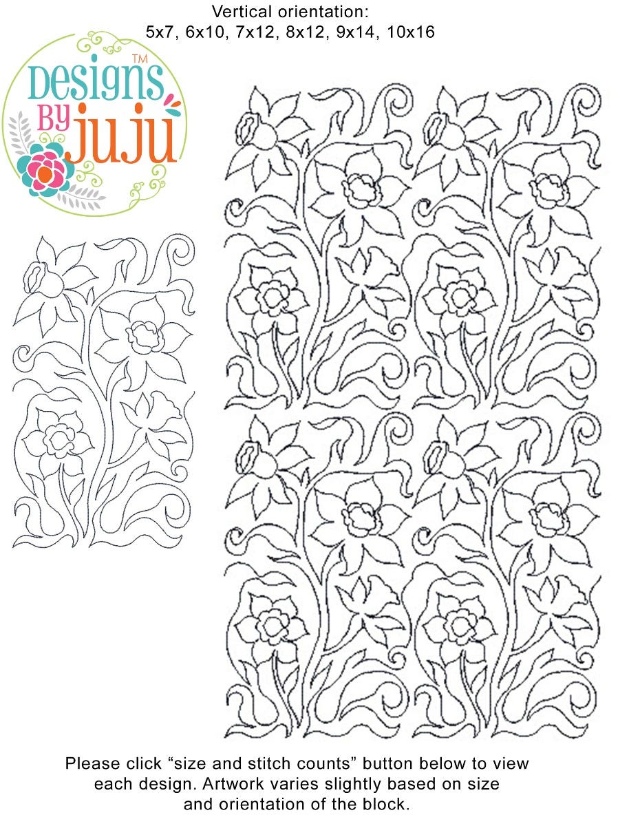 Includes continuous line single run End-to-End Quilting™ embroidery design as shown.