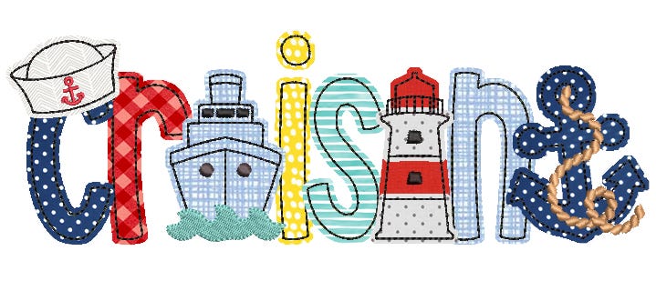"Cruisin" features designs from our Nautical Alphabet Embellishment Kit