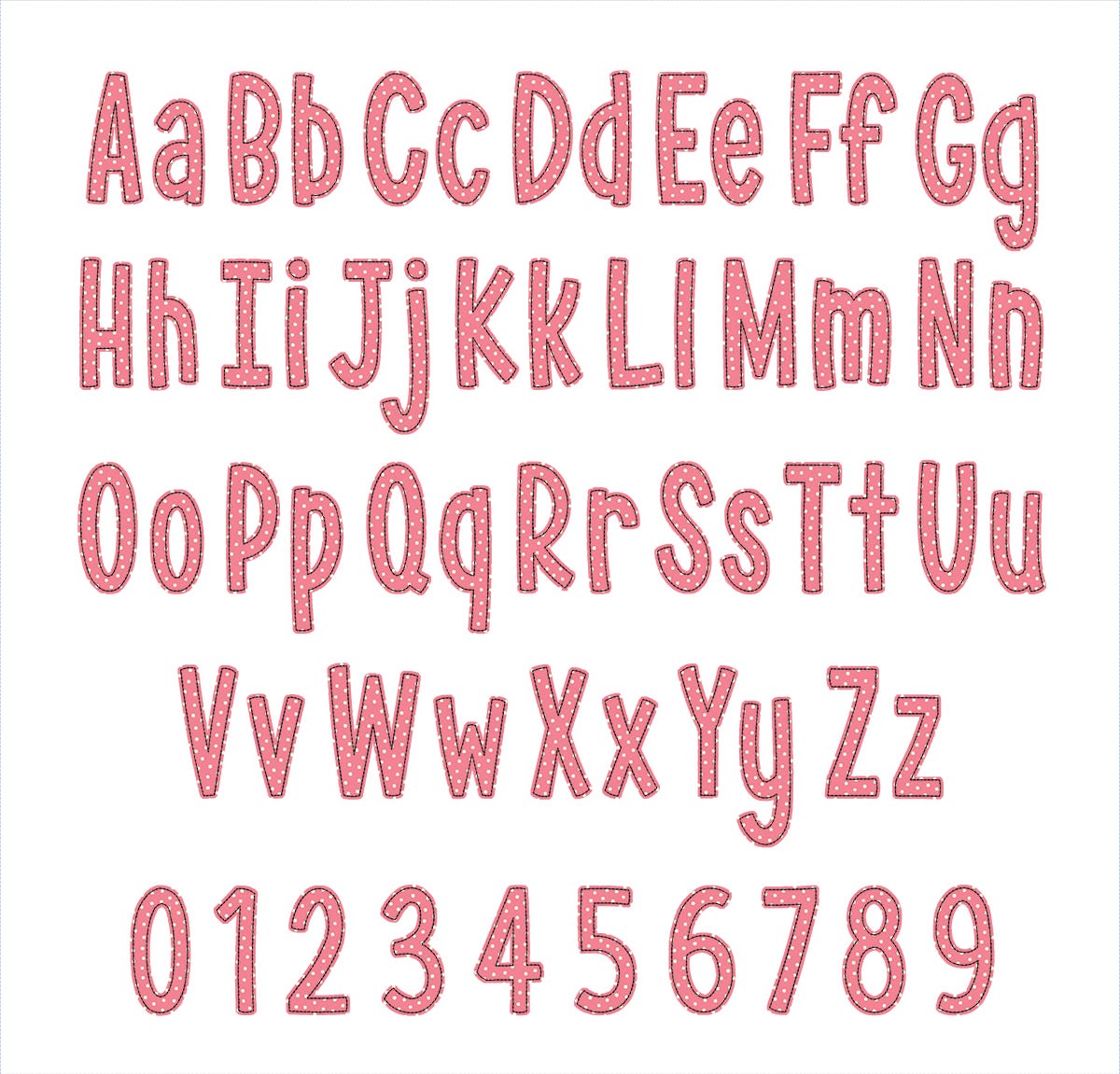 Daisy Doodle Bean Stitch Applique Alphabet includes capital and lowercase letters along with numbers in 8 sizes (2.5-inch, 3-inch, 3.5-inch, 4-inch, 4.5-inch, 5-inch, 5.5-inch and 6-inch).