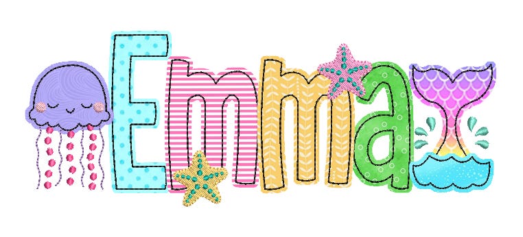 "Emma" features designs from our Ocean Life Alphabet Embellishment Kit