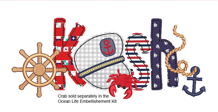 "Kash" features designs from our Nautical and Ocean Life Alphabet Embellishment Kits