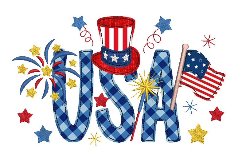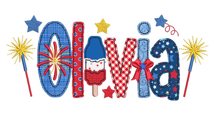 "Olivia" and "USA" feature designs from our Patriotic Alphabet Embellishment Kit