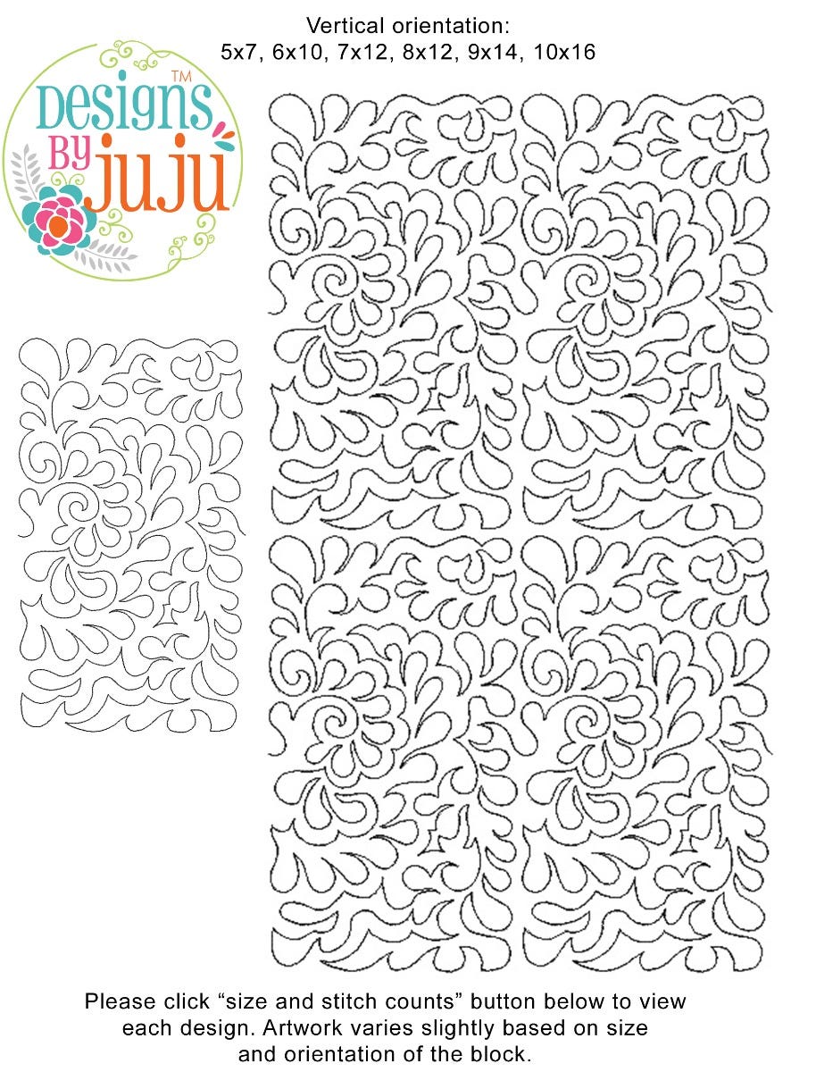 Each one of our End-to-End Quilting™ embroidery designs is an originally created design available in a large variety of block sizes. Every block is one continuous single-run line running edge to edge beginning on the left and exiting on the right. There is NO backtracking or double stitching. Each size block has been engineered and manually digitized by our team for EXACT edge-to-edge quilting precision so that when they are aligned properly in your hoop, you cannot tell where one block ends and the next one begins! ADDITIONALLY, the art has been created for each size so that when the rows are stacked on top of each other, it provides a practically seamless, professional, allover quilting effect that mimics (E2E) pantographs so you can do edge-to-edge quilting on your embroidery machine!