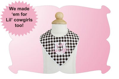 You can make the bib with the included Lil' Cowboy and Lil' Cowgirl appliques (as shown below) or leave the applique off like I did on the photo above.