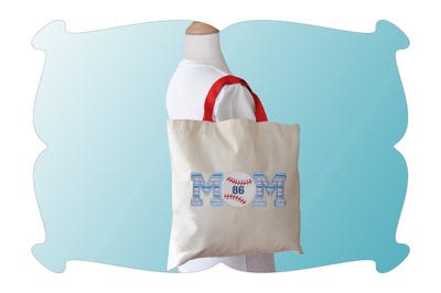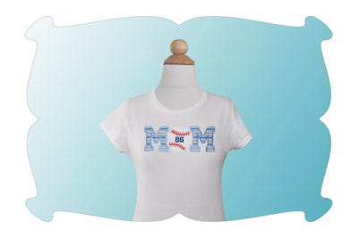 The "Baseball Mom" applique design comes in 4 sizes and both satin stitches and zig zag stitches.