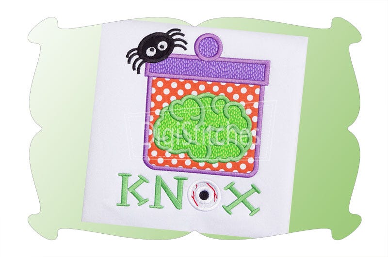 Halloween Brain In A Jar Applique