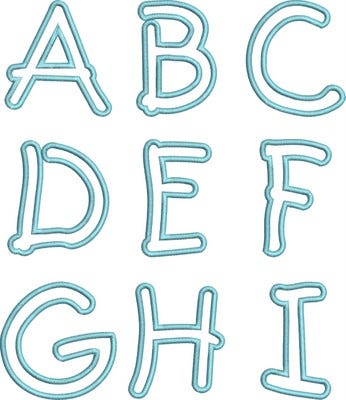 3 sizes of upper case letters: 3.5 inch, 4.4 inch and 5.5 inch.