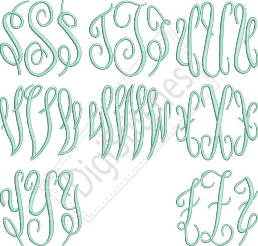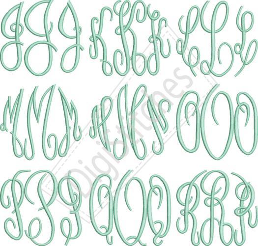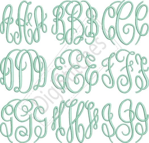 A beautiful script circle monogram embroidery font in smaller sizes.