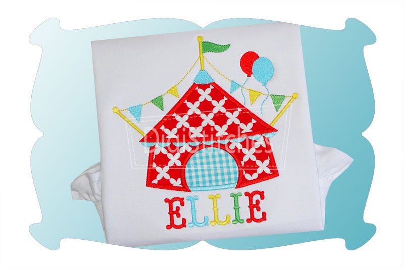 This darling Circus Tent applique features party balloons and a banner!