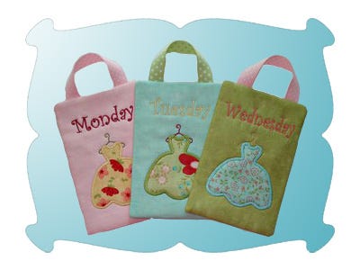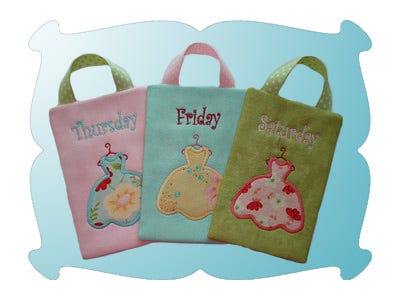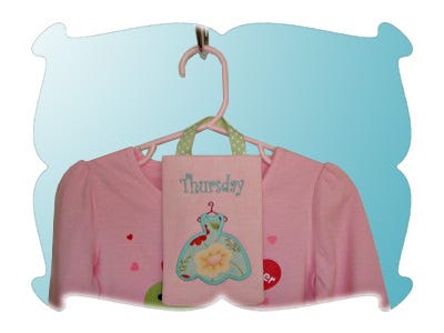 Simply choose the outfits for the week, hang them on hangers and place the day of the week design on it.