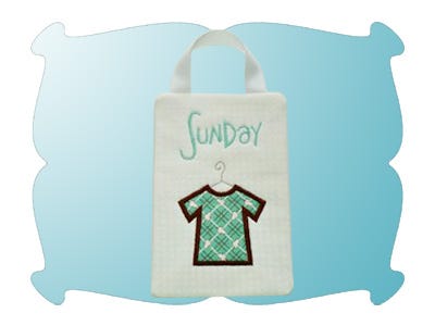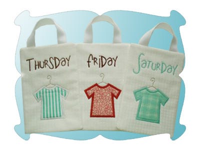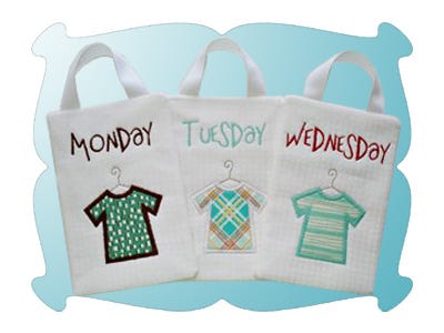 Simply choose the outfits for the week, hang them on hangers and place the day of the week design on it.