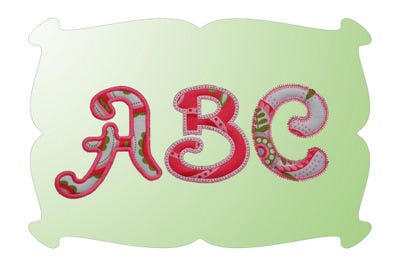 FancyĀ Applique FontĀ includesĀ capital letters A thru ZĀ inĀ 3 sizes: 3.5, 4.5 and 5.5 inch.