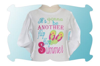 The "Flip Flop Summer" design is part applique and part satin stitched letters. Design comes in 3 sizes. All sizes included with your purchase!