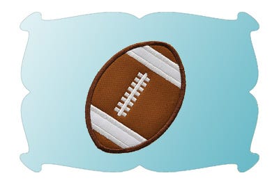 5x7: With "Go Team": 4.51 by 5.19 inches. SC 881. Football only: 4.77 by 5.32 inches. SC 8460.