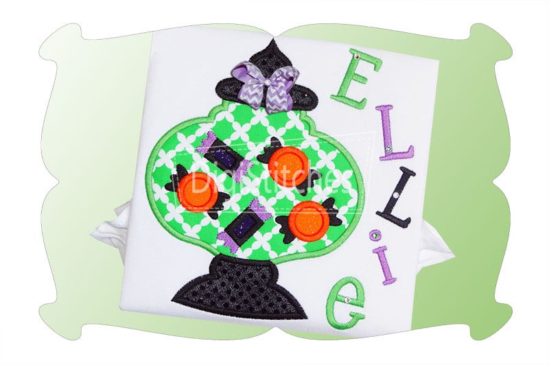 The Halloween Candy Jar applique is just the thing for the girl who loves candy!