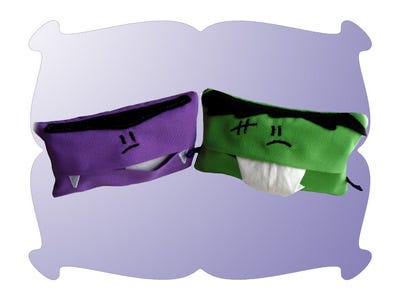 Great Idea: These cute tissue cases are a super little teacher gift and great for a classroom full of kidos when the teacher says "No candy!" . You can make a few of the "Dracu" and "Frankie" ones as special hand outs and a whole bunch of the blank ones, which stitch out in minutes.