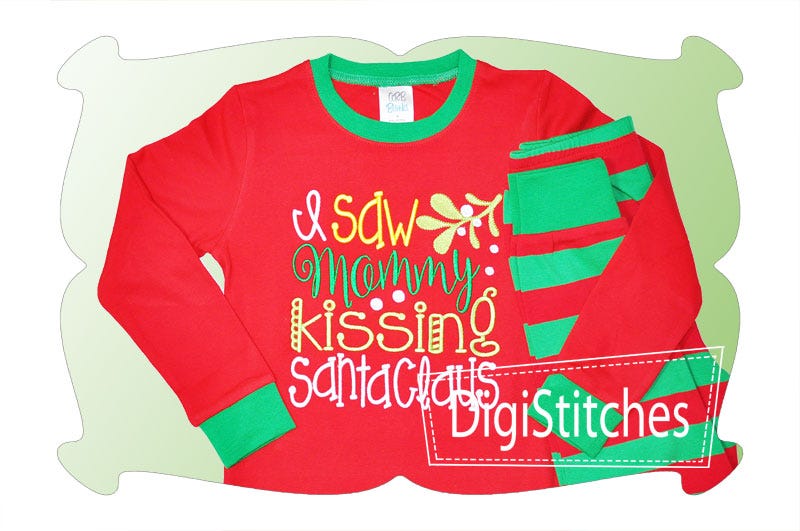 I Saw Mommy Kissing Santa Claus comes in 4 sizes. All sizes included with your purchase!