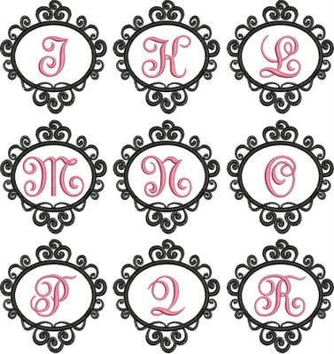 The Isabella MonogramĀ Fancy Frame includes two sizes: 4x4 (3.62 by 3.88 inches. Average stitch count: 7215) and 5x7 (4.51 by 4.83 inches. Average stitch count: 9633).
