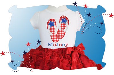 The July 4th applique is made to match our July 4th flip flop snap clip covers (sold seperately)