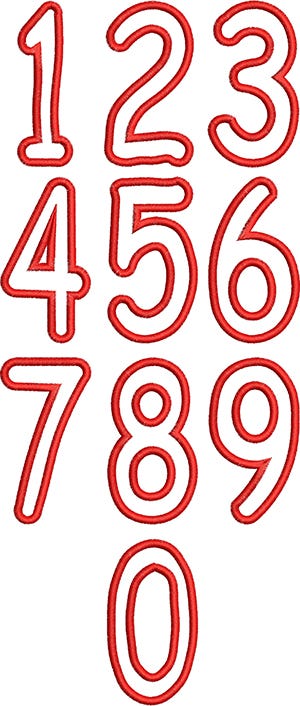 Ā Ā Numbers 0-9, in 3 sizes: 3, 4 and 5 inch.Ā