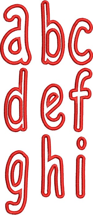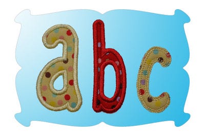 Lower case letters a thru z, in 3 sizes: to coordinate with the upper case letters.