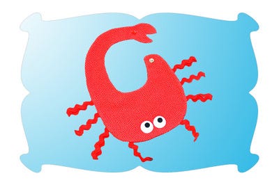 This coastline crustacean will quickly side step his way into your favorite baby bib!