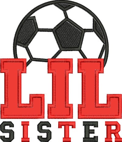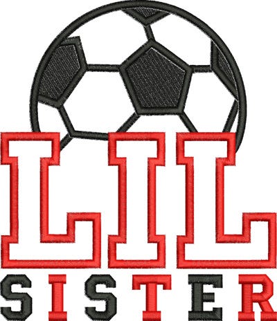 The Lil Sister Soccer Applique comes in 4 sizes. All sizes included with your purchase!