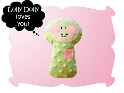 Lolly Dolly is a modern baby shaped like a Lolly Pop