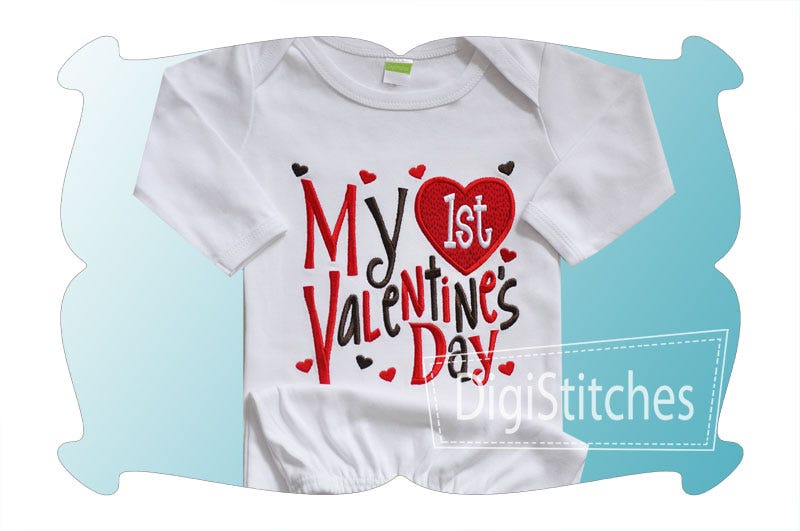 My First Valentines Day Boys applique comes in 4 sizes. All sizes included with your purchase!Ā