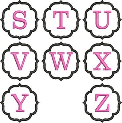 Included are capital letters A thru Z, embedded onto the design for you.