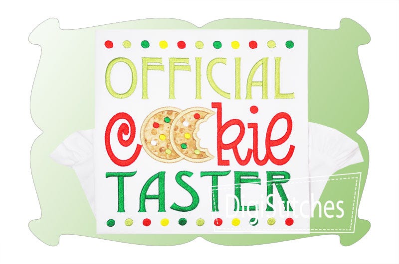 Official Cookie Taster Applique comes in 4 sizes. All sizes included with your purchase!