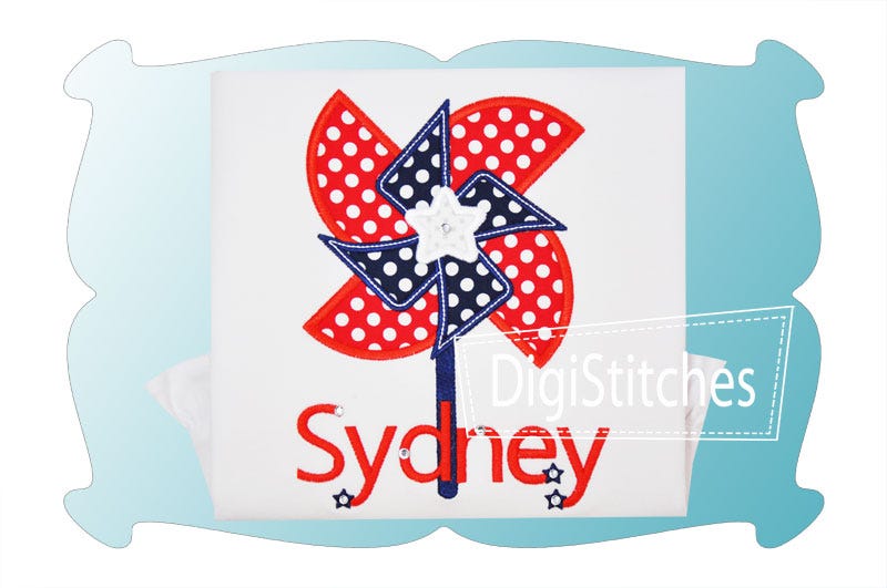This Patriotic Pinwheel applique features a star in the middle, making it the perfect choice for the July 4th festivities!