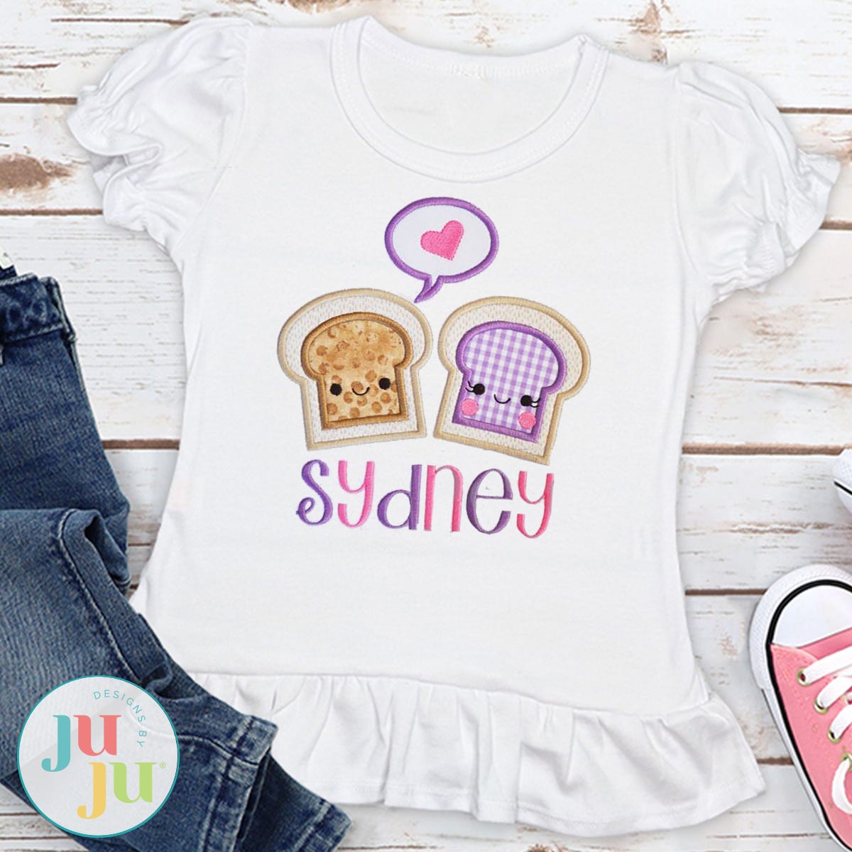 TheĀ "Peanut Butter and Jelly Applique" design comes in 4 sizes. All sizes included with your purchase!