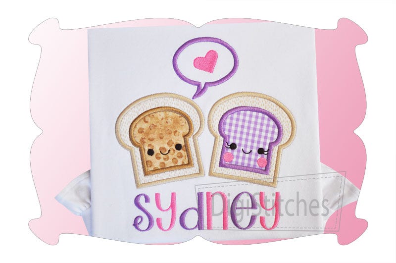 The "Peanut Butter and Jelly Applique" design comes in 4 sizes. All sizes included with your purchase!