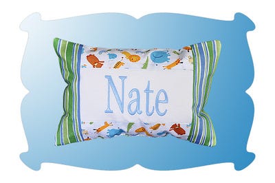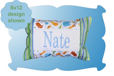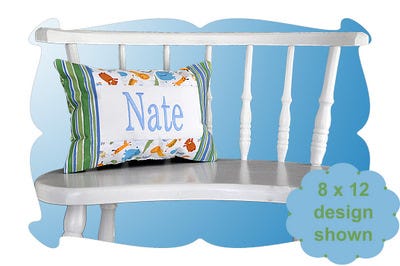 The pieced name pillow comes in 3 sizes 6x10, 7x12 and 8x12.