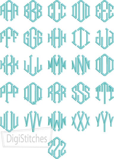 A beautiful point/ diamond monogram embroidery font in smaller sizes.