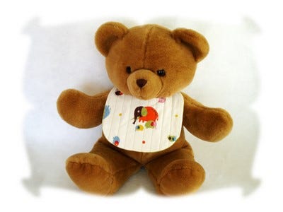 Baby Bear is modeling the bib and yes, it's for real babies (not baby dolls).