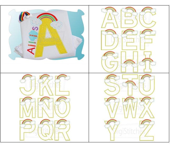 The Rainbow Applique Alphabet comes in 4 sizes. All sizes included with your purchase!Ā
