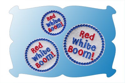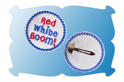 The Red, White, Boom feltie comes in 3 sizes: 1.50, 1.75 and 2.00 inches. The 2.00 inch size can be used as a large snap clip cover.