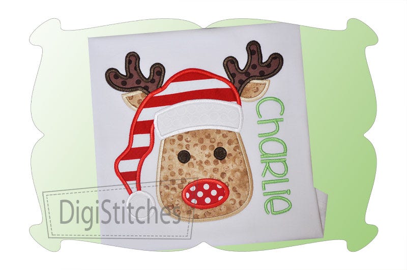 Reindeer With Santa Hat For Boys Applique